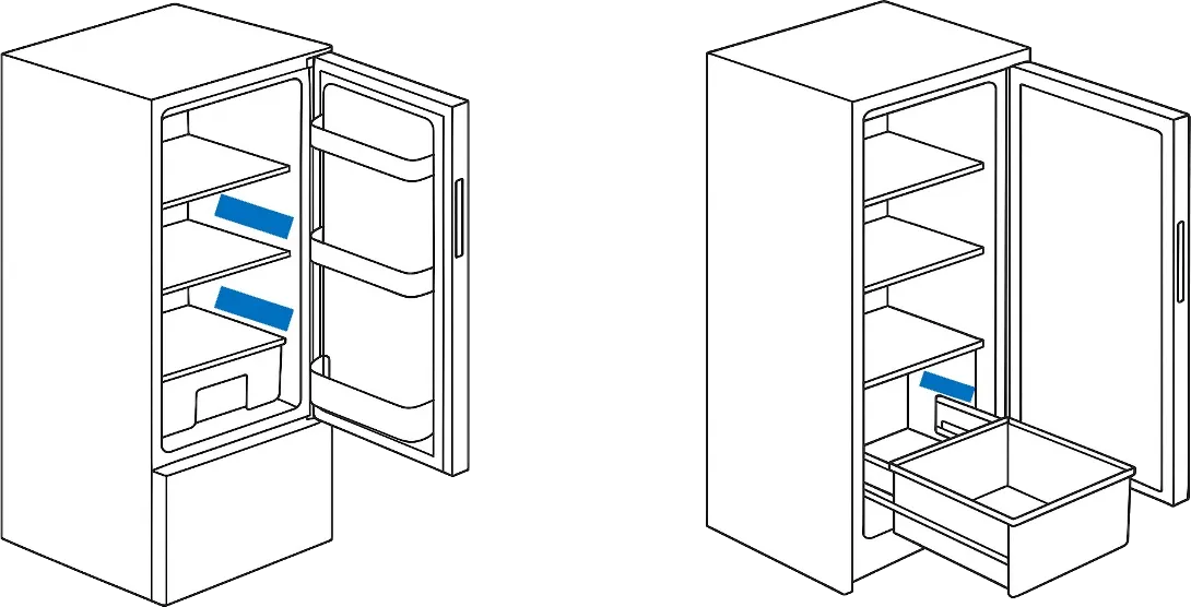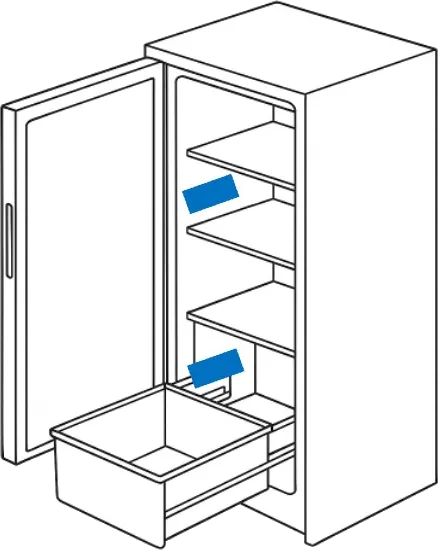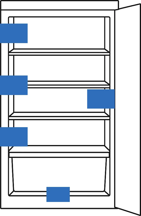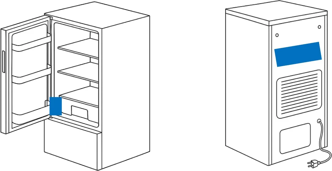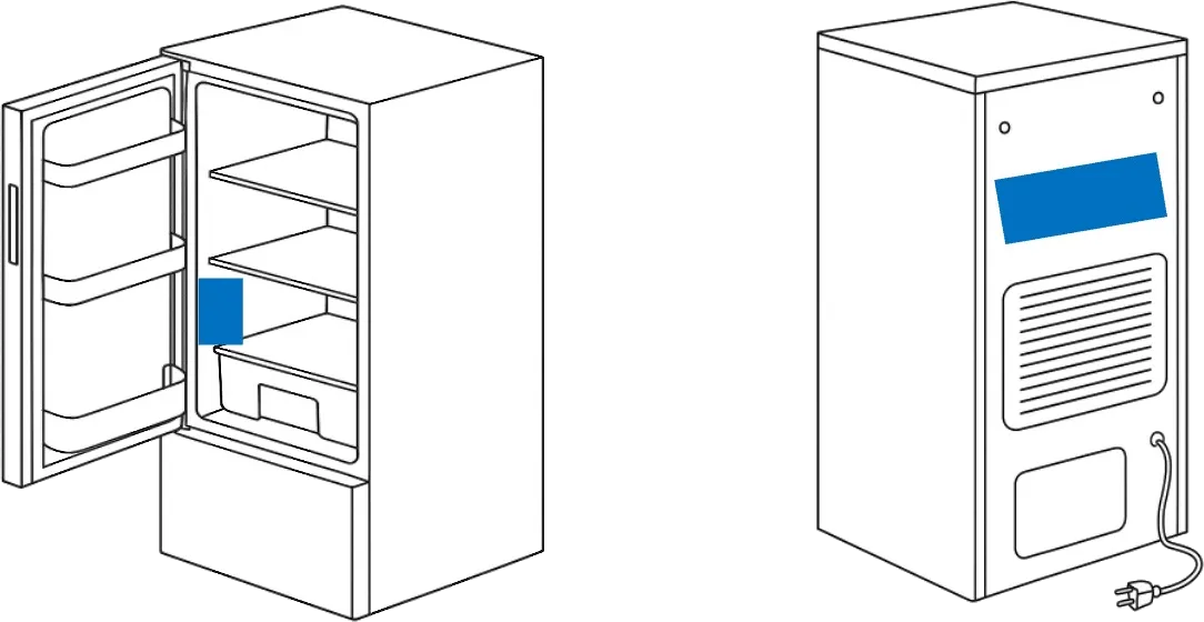 Das Typenschild mit Modellnummer, Typenbezeichnung, Produktnummer (PNC), dem ML Code und Seriennummer befindet sich bei AEG Kühlschränken in der Regel auf der Innenseite seitlich an der Wand nahe der Tür oder an der Wand links oder rechts neben dem Gemüsefach.