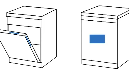 Das Typenschild mit der Typennummer und Modellnummer befindet sich bei LG Geschirrspülern in der Regel an der Innenseite der Tür oder am oberen Rahmen bzw. an der Außenseite der Tür.